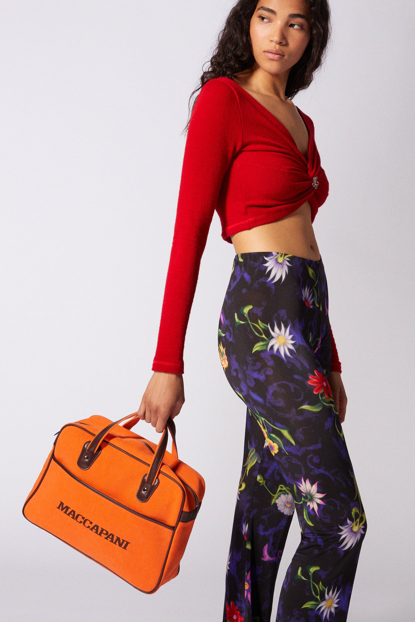 Inspired by a vintage piece from Margherita’s family archive, The Macca Bag pays homage to her grandfather’s 1970s travel agency and its original Varese grip bag. Reimagined as Maccapani’s first-ever accessory, it captures the spirit of movement, heritage, and playful nostalgia.