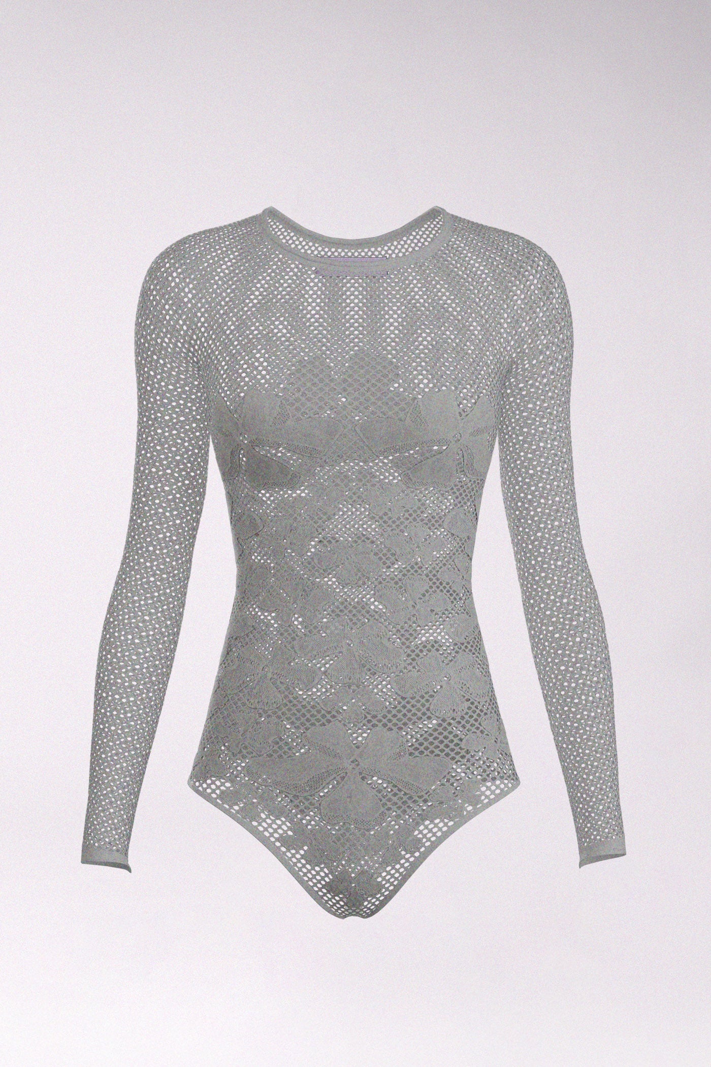 A sculpting second-skin layer, the MONOGRAM BODY is crafted in sheer mesh with monogram inlays. Stretchy, sleek, and effortlessly cool.