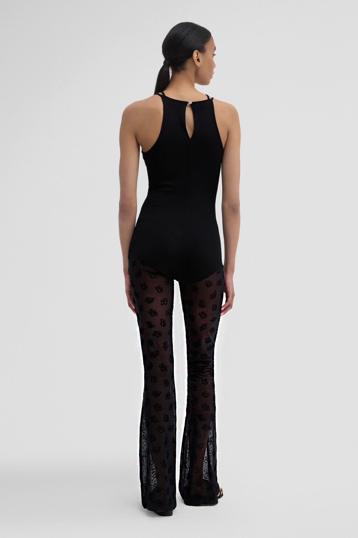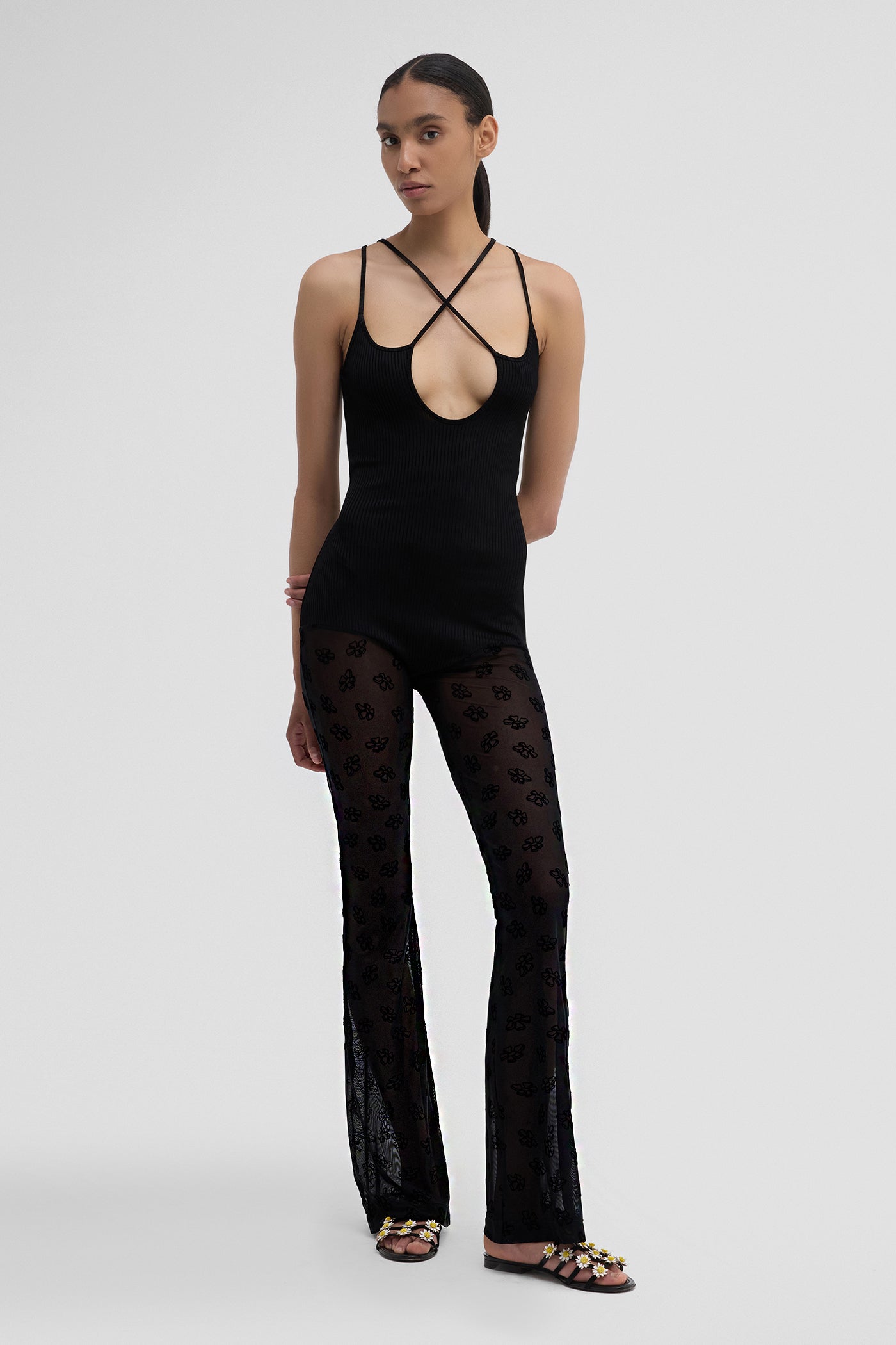 Sleek yet effortlessly comfortable, the DANCESUIT strikes the perfect balance between style and ease. With a soft viscose body and sheer pants in the edgy signature MACCAPANI monogram print, it’s designed to move with you.