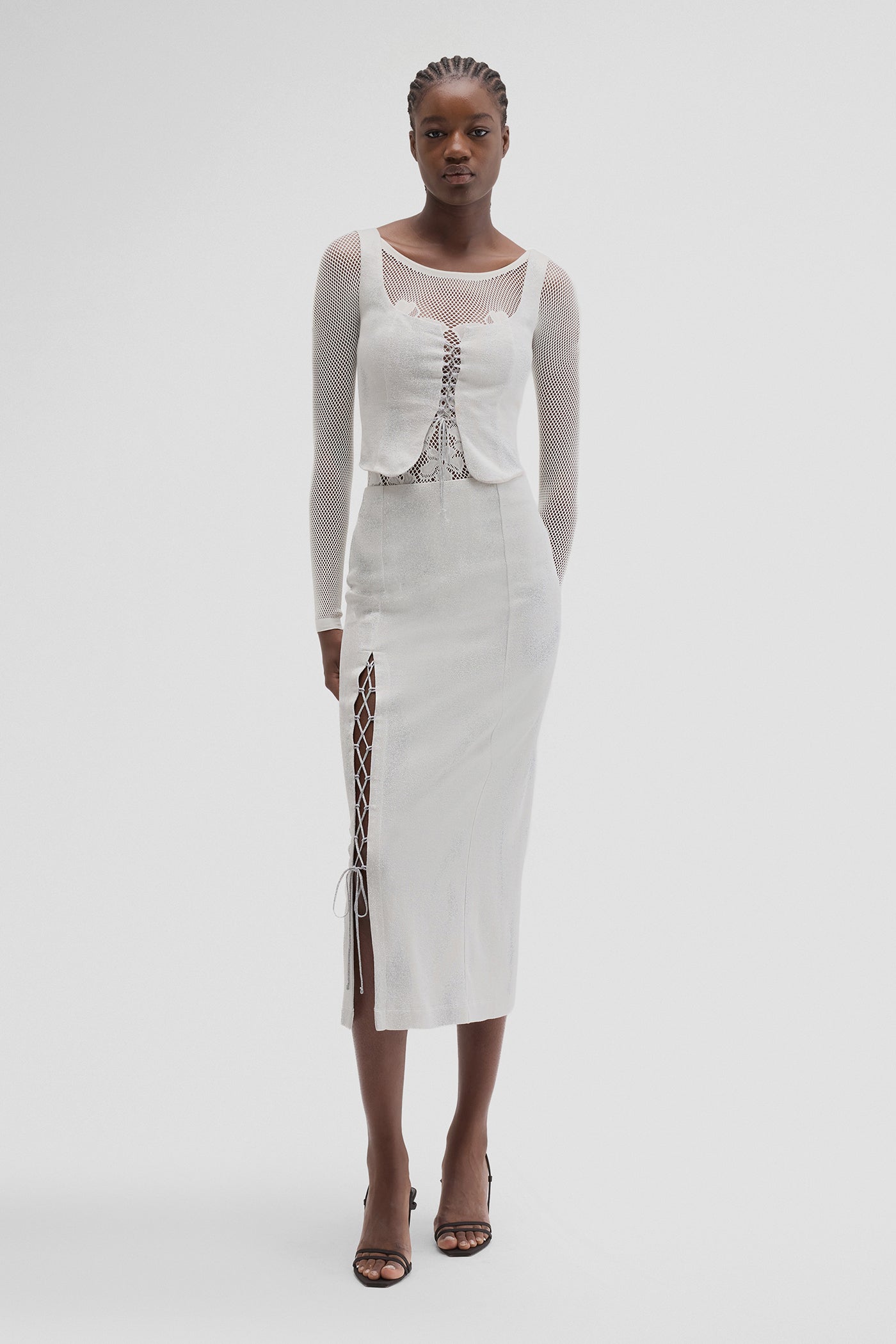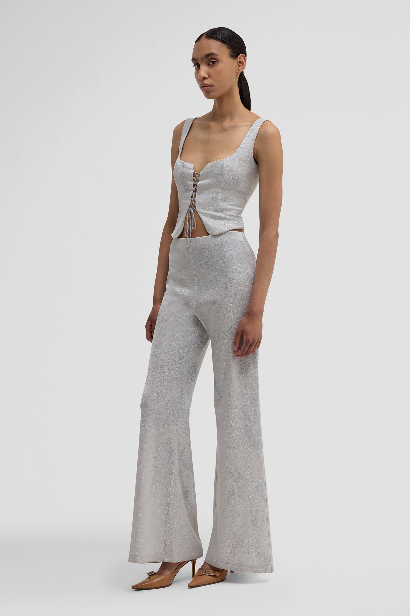 Shimmering in off-white silver, the COMFY CORSET offers a bold take on feminine form. Blending elegance and comfort, it is reimagined by taking the traditionally restrictive corset and making it liberating.