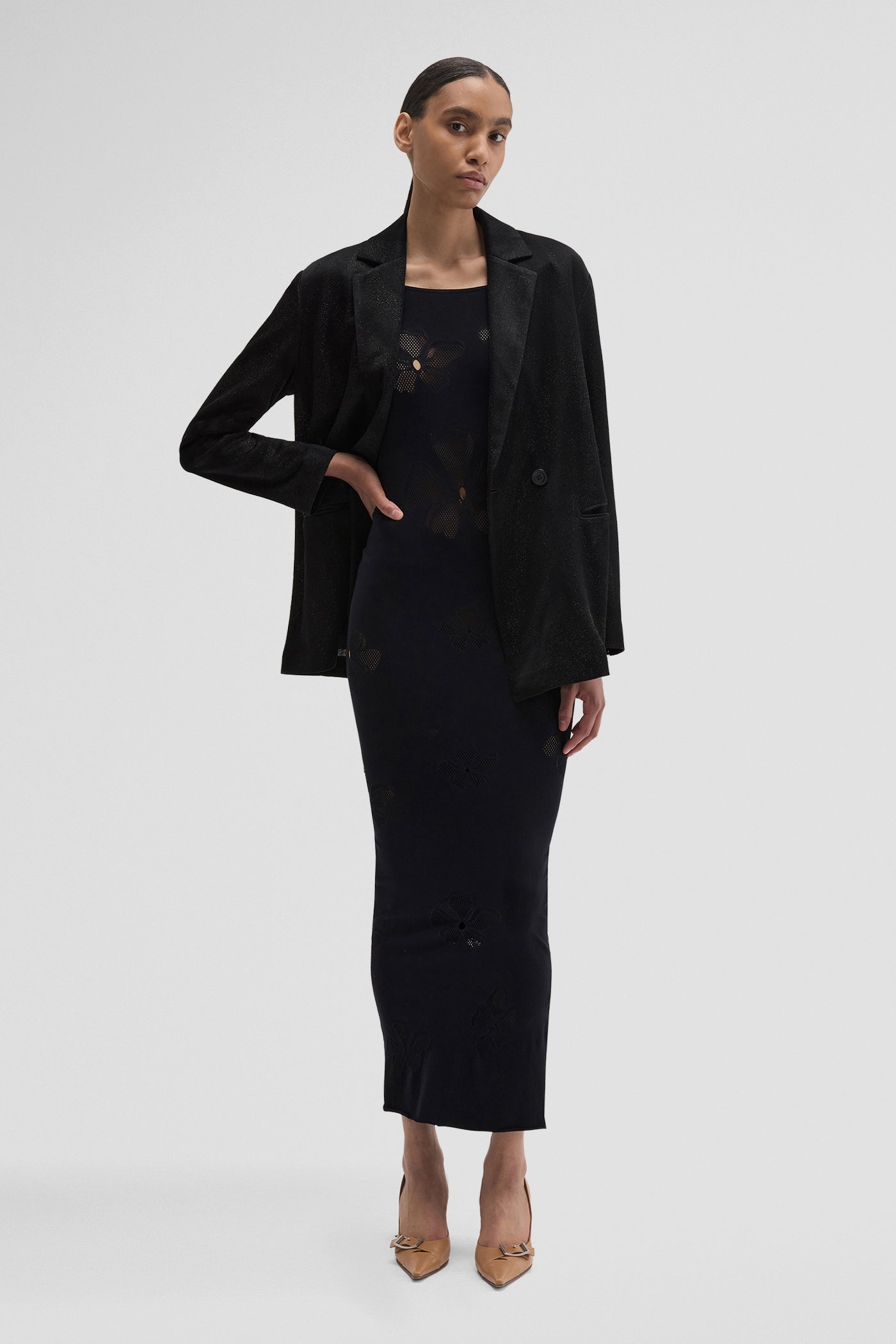 The MONOGRAM DRESS supports and sculpts the body with spiral mesh inlays on an extra-stretchy base. This form-fitting piece plays with bold pattern and texture while maintaining all-day comfort.