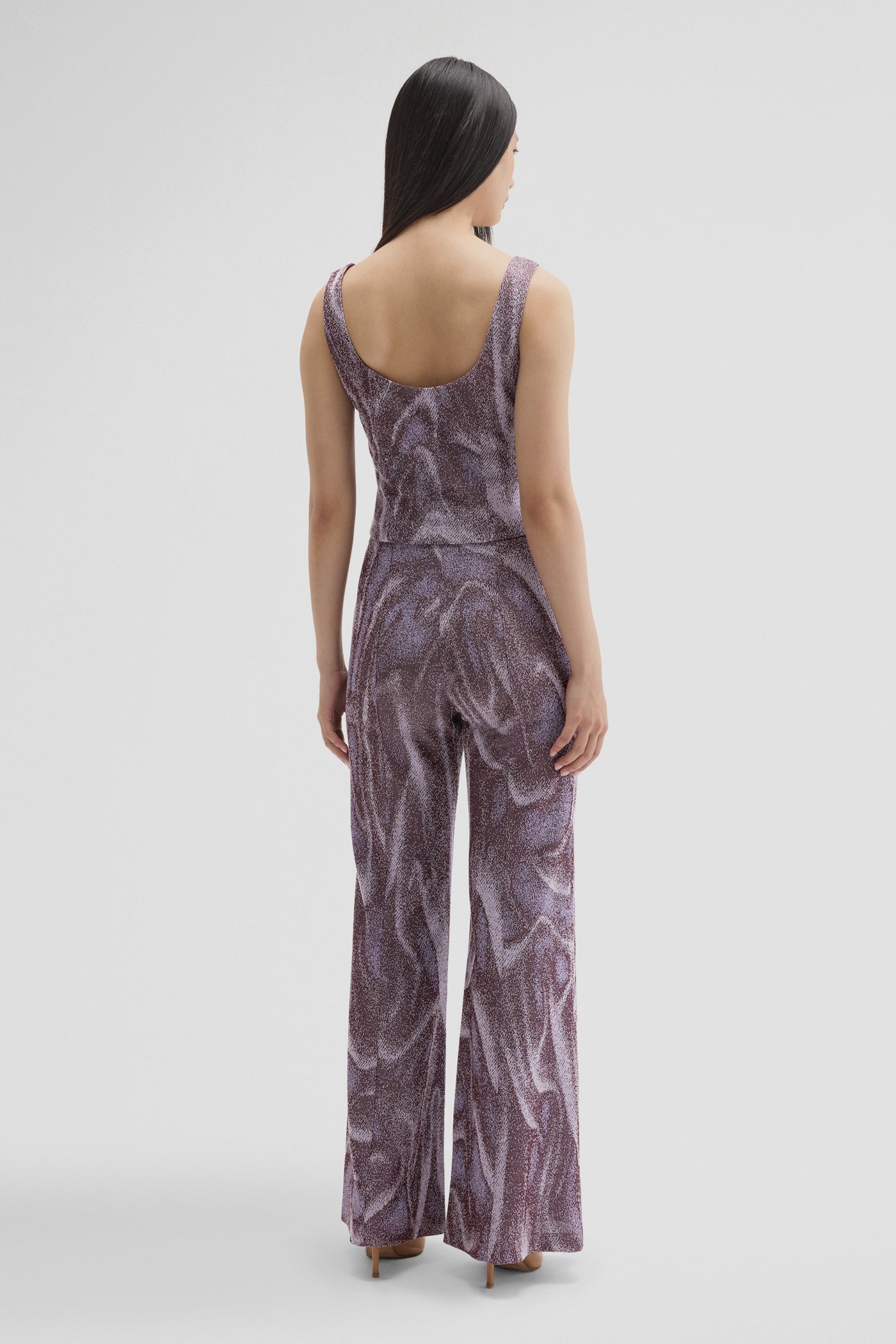 Un classico contemporaneo con il tocco distintivo di MACCAPANI, gli EASY PANT in jacquard dalle sfumature lilla-viola rivisitano la silhouette palazzo con eleganza moderna. Il movimento fluido e la facilità d’uso quotidiana li rendono il perfetto equilibrio tra stile e versatilità. Indossali con il TATS BLAZER coordinato o con il COMFY CORSET per un look che combina relax e raffinatezza.