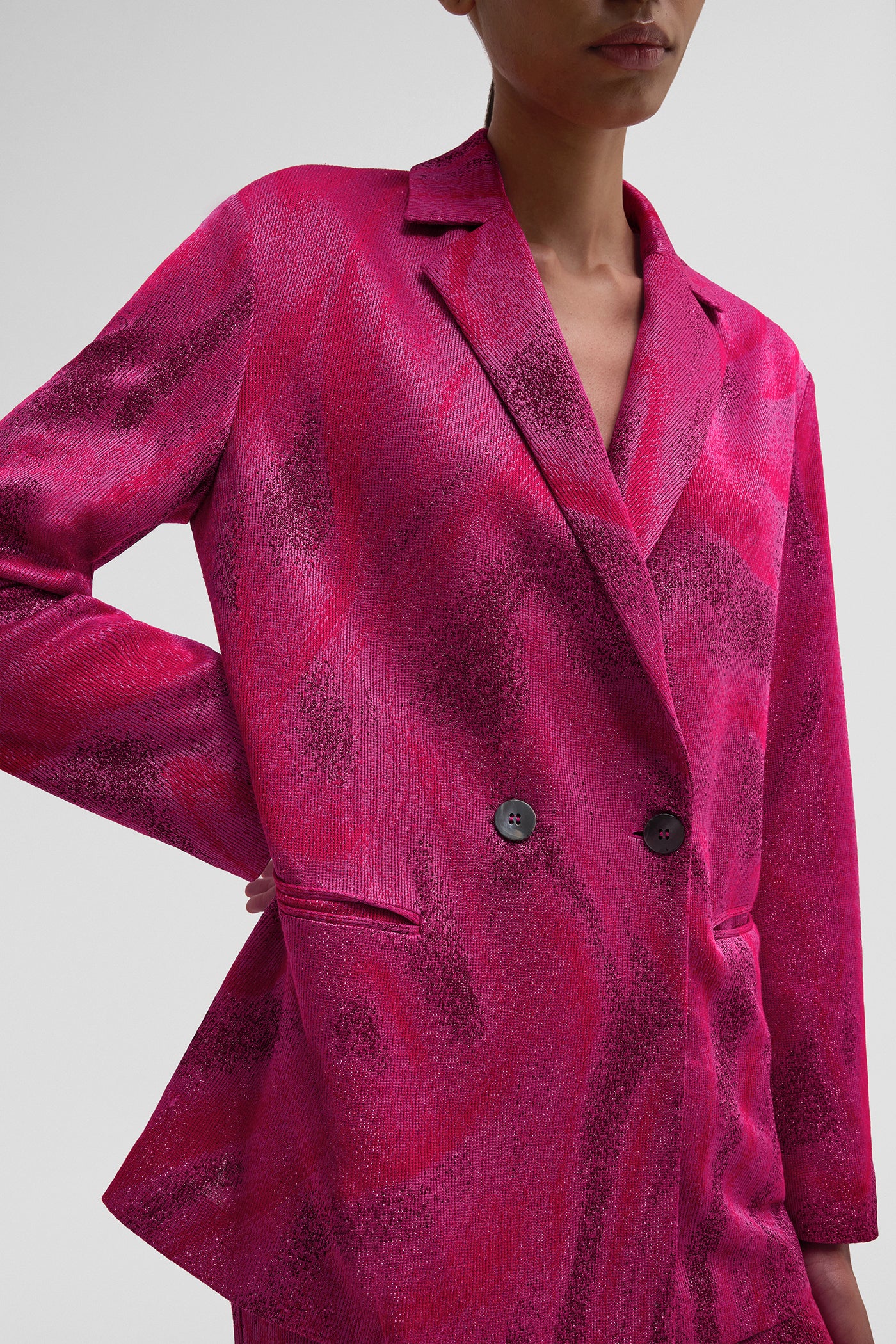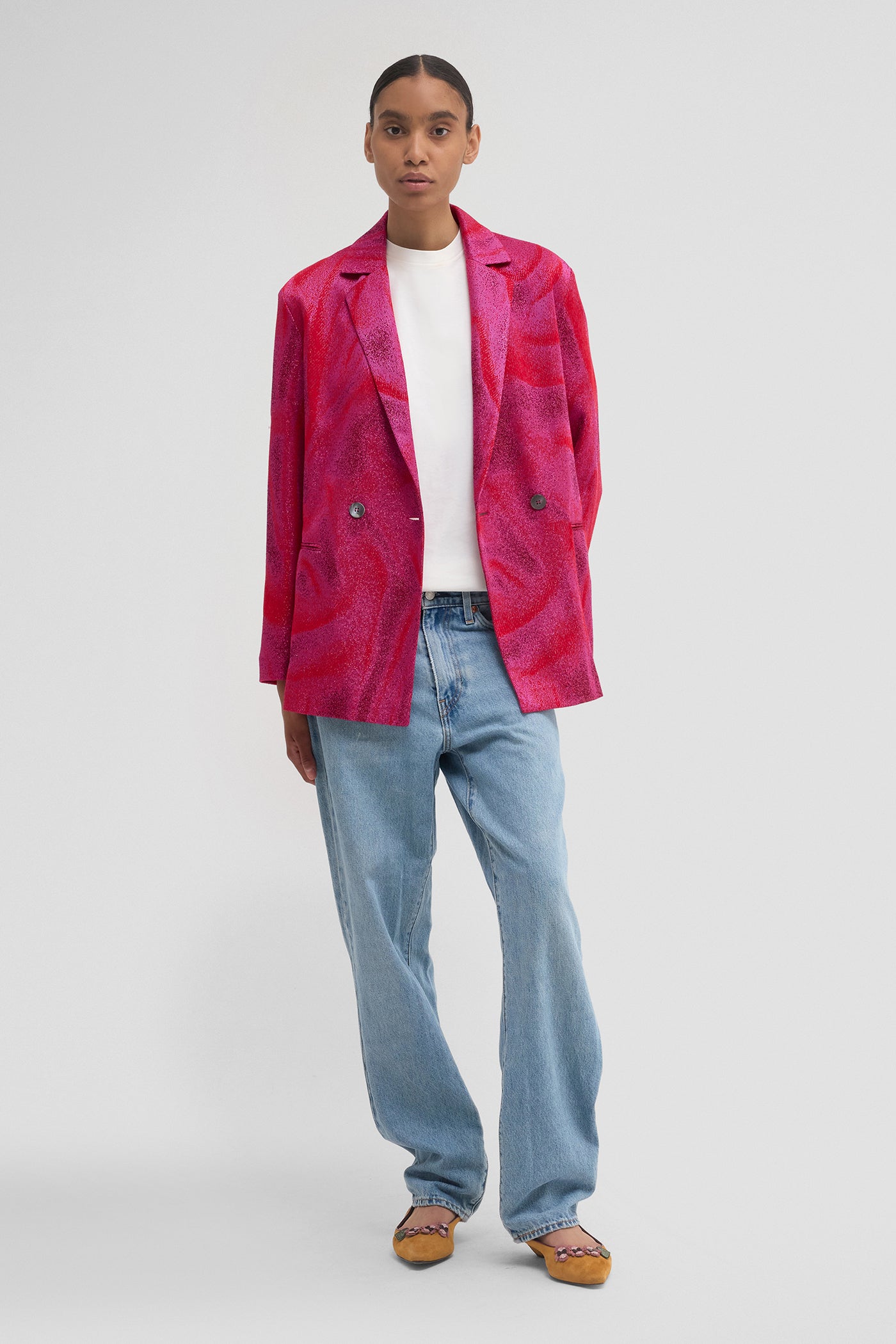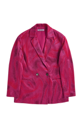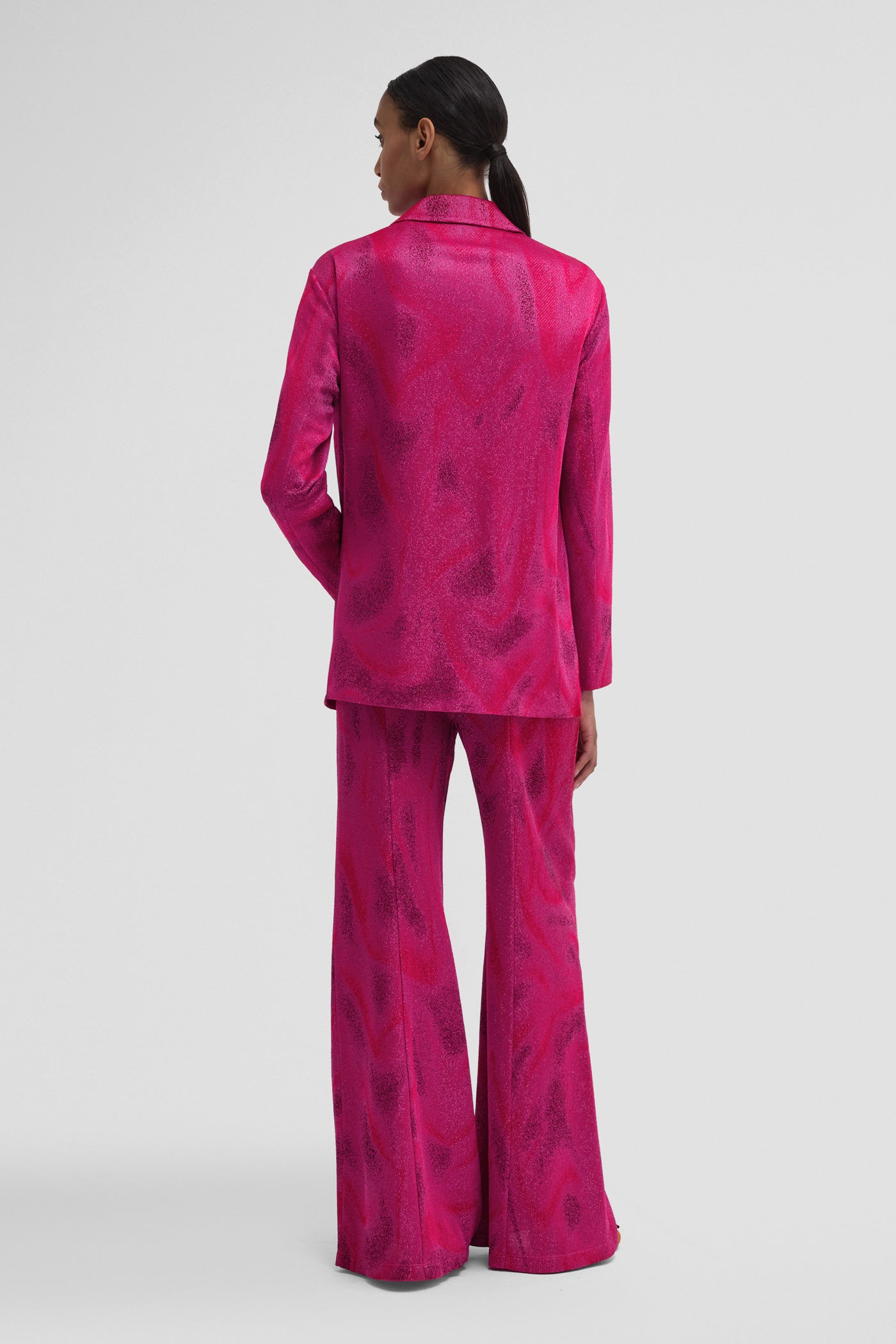 Il TATS BLAZER in jacquard fucsia è un’esplosione di colore dal fascino deciso. Un classico del tailoring rivisitato con un tocco moderno e giocoso, perfetto da indossare sopra un abito scivolato o abbinato agli EASY PANT coordinati per un look completo e d’impatto.
