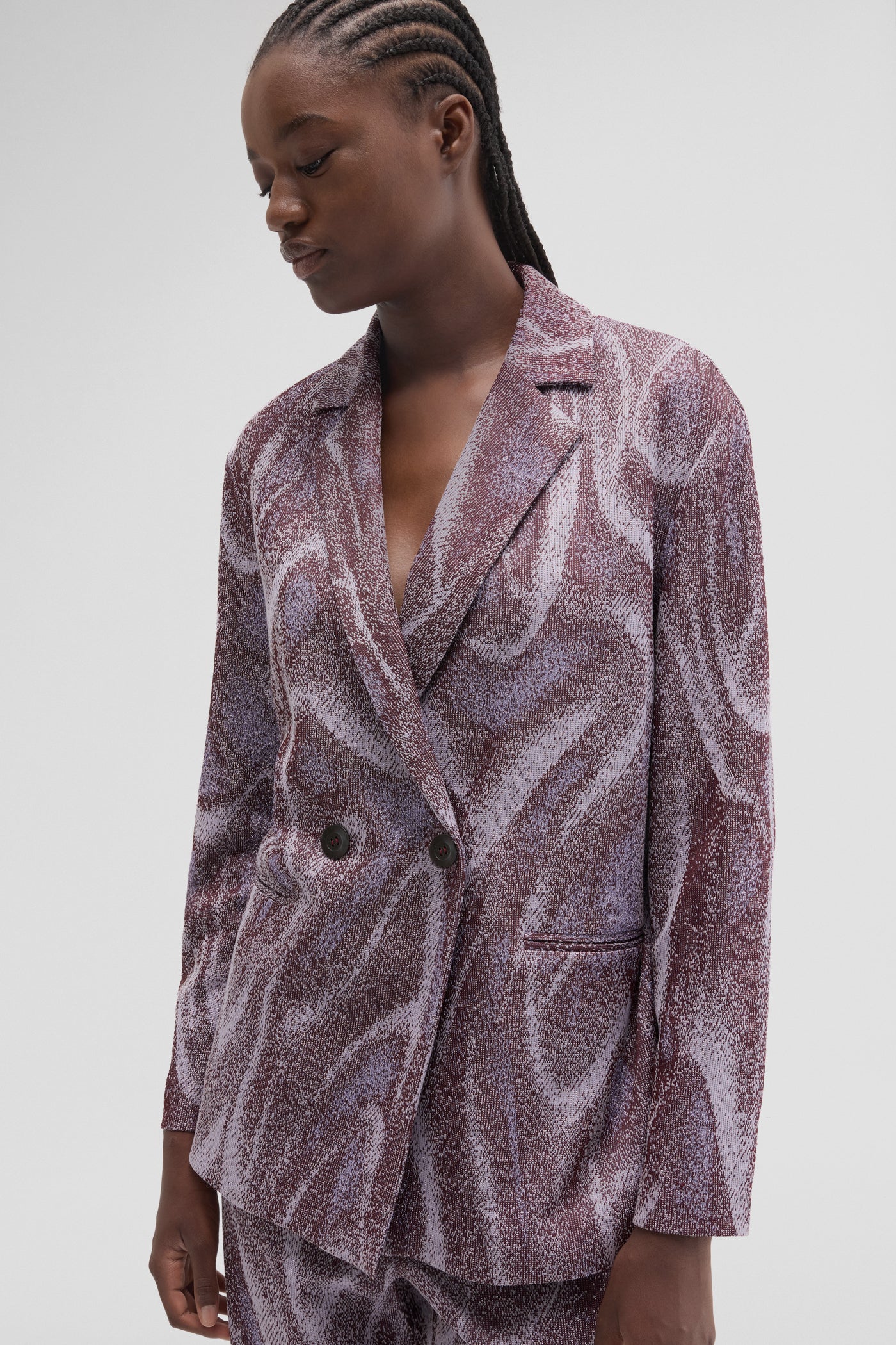 Il TATS BLAZER in jacquard lilla-viola unisce una tonalità delicata ma d’impatto a un’elegante luminosità. Un capo di sartoria senza tempo, rivisitato con un tocco moderno e giocoso. Perfetto da sovrapporre a un abito scivolato o da abbinare agli EASY PANT coordinati per un look completo e raffinato.