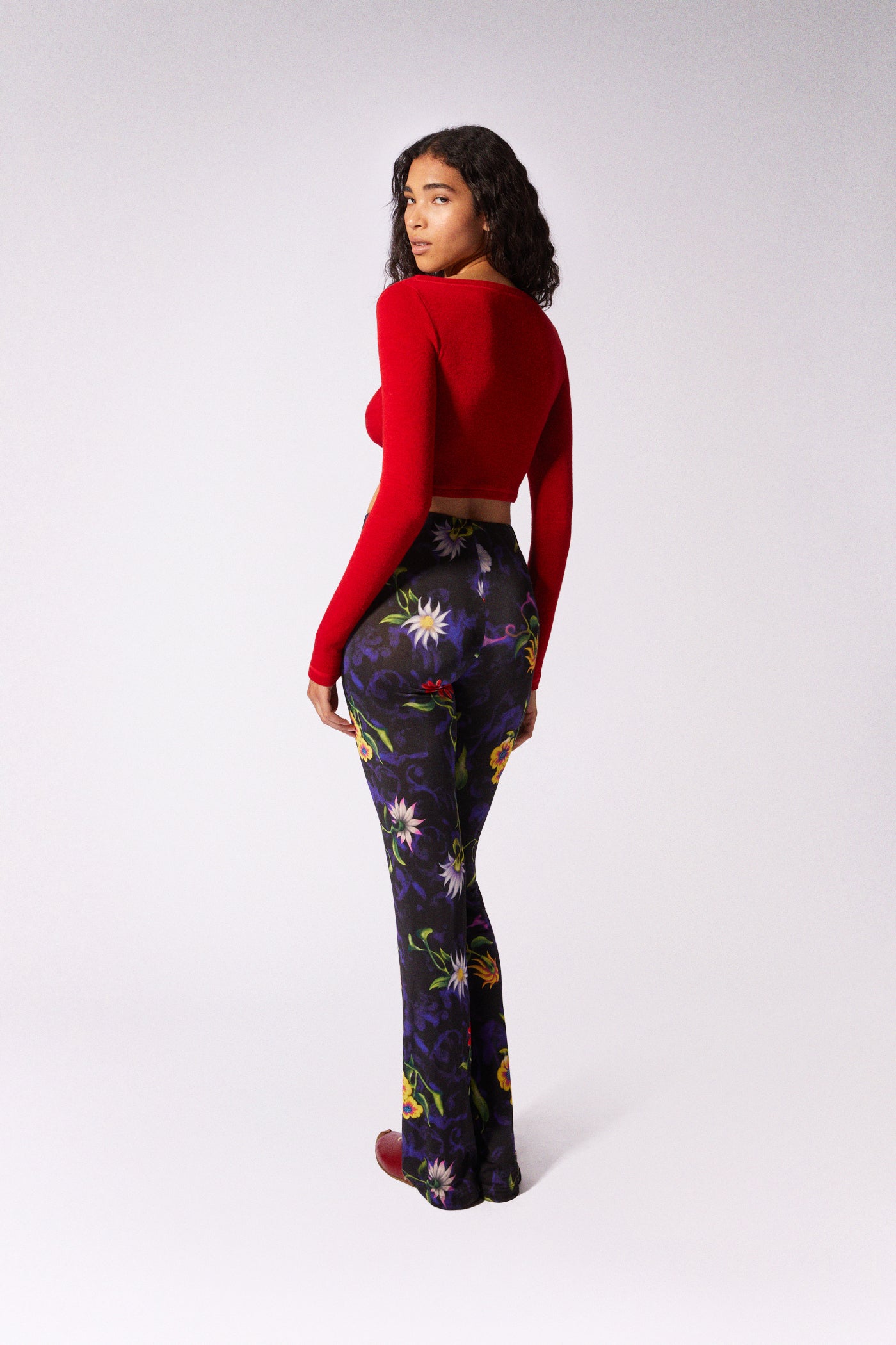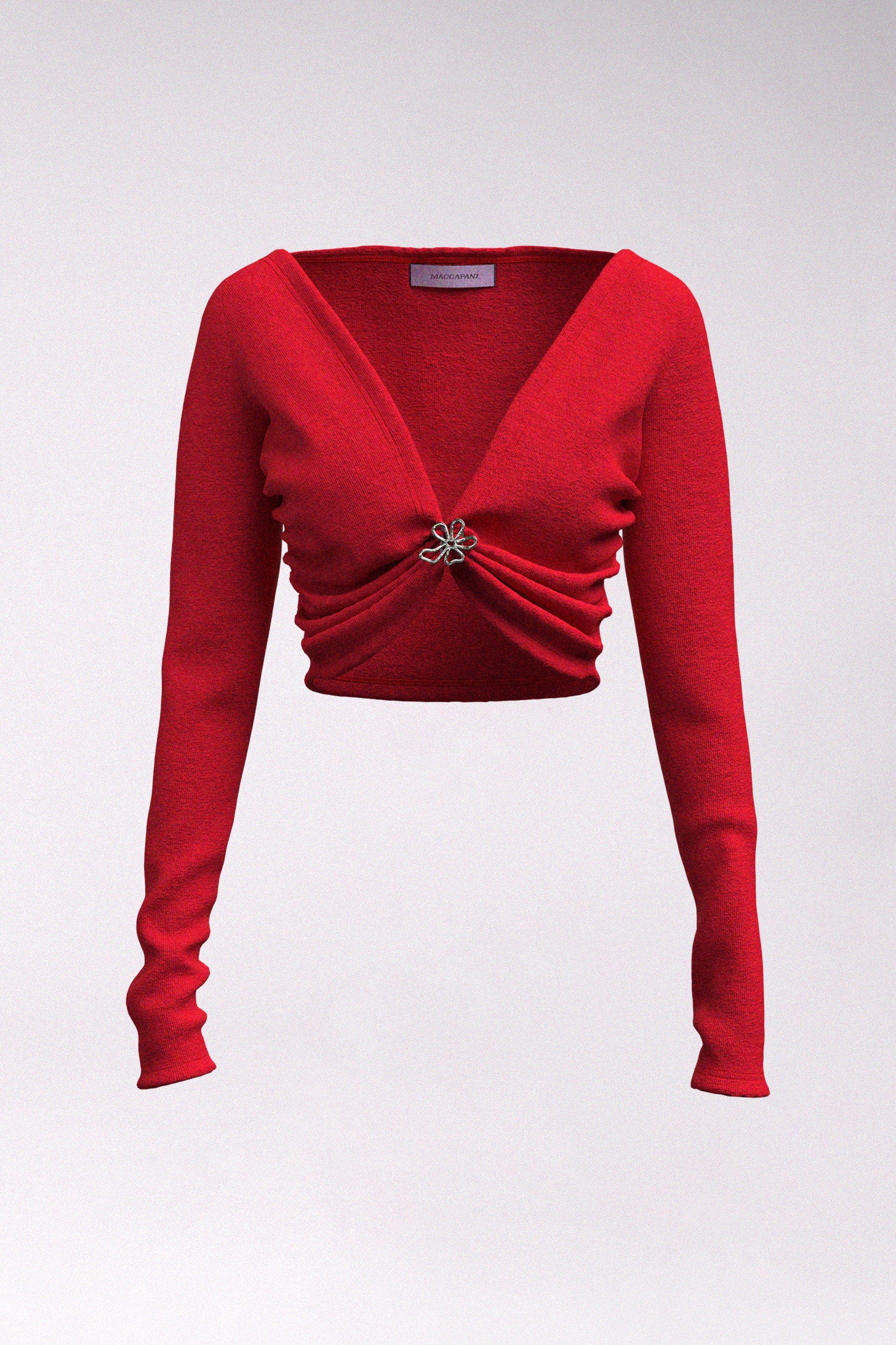 ANGELA LONG SLEEVE TOP in red is a feminine throw-on for colder evenings or a standalone daring piece. A knit that balances provocation and elegance, designed to make simplicity feel striking.