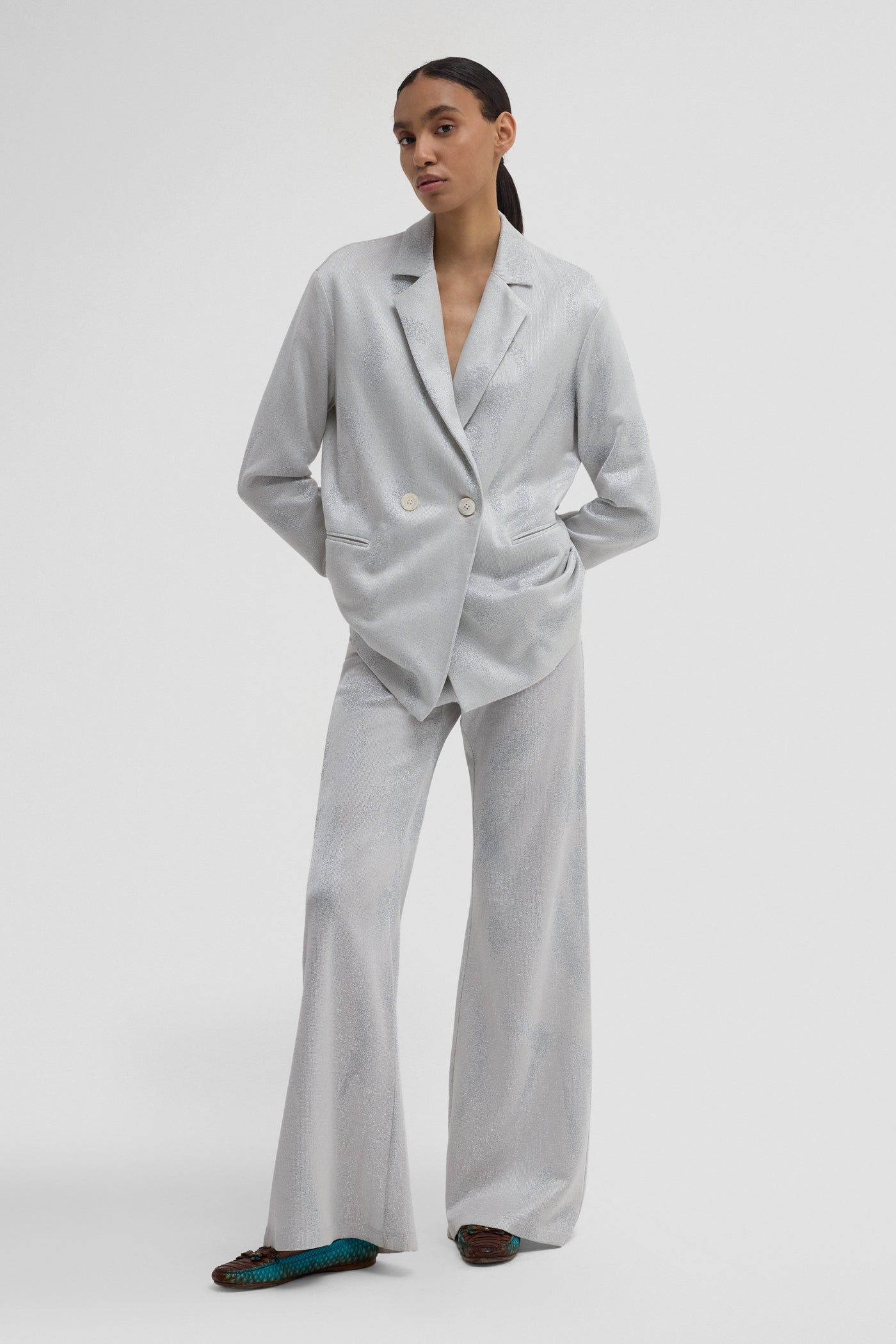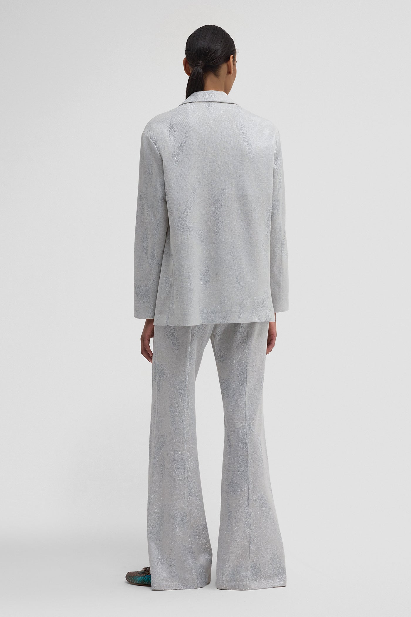 A contemporary classic with MACCAPANI’s signature flair, the EASY PANT in off-white silver jacquard reimagines the palazzo silhouette. With flowing movement and everyday ease, it balances elegance and wearability. Pair it with the matching TATS BLAZER or the COMFY CORSET for a look that’s equal parts relaxed and refined.