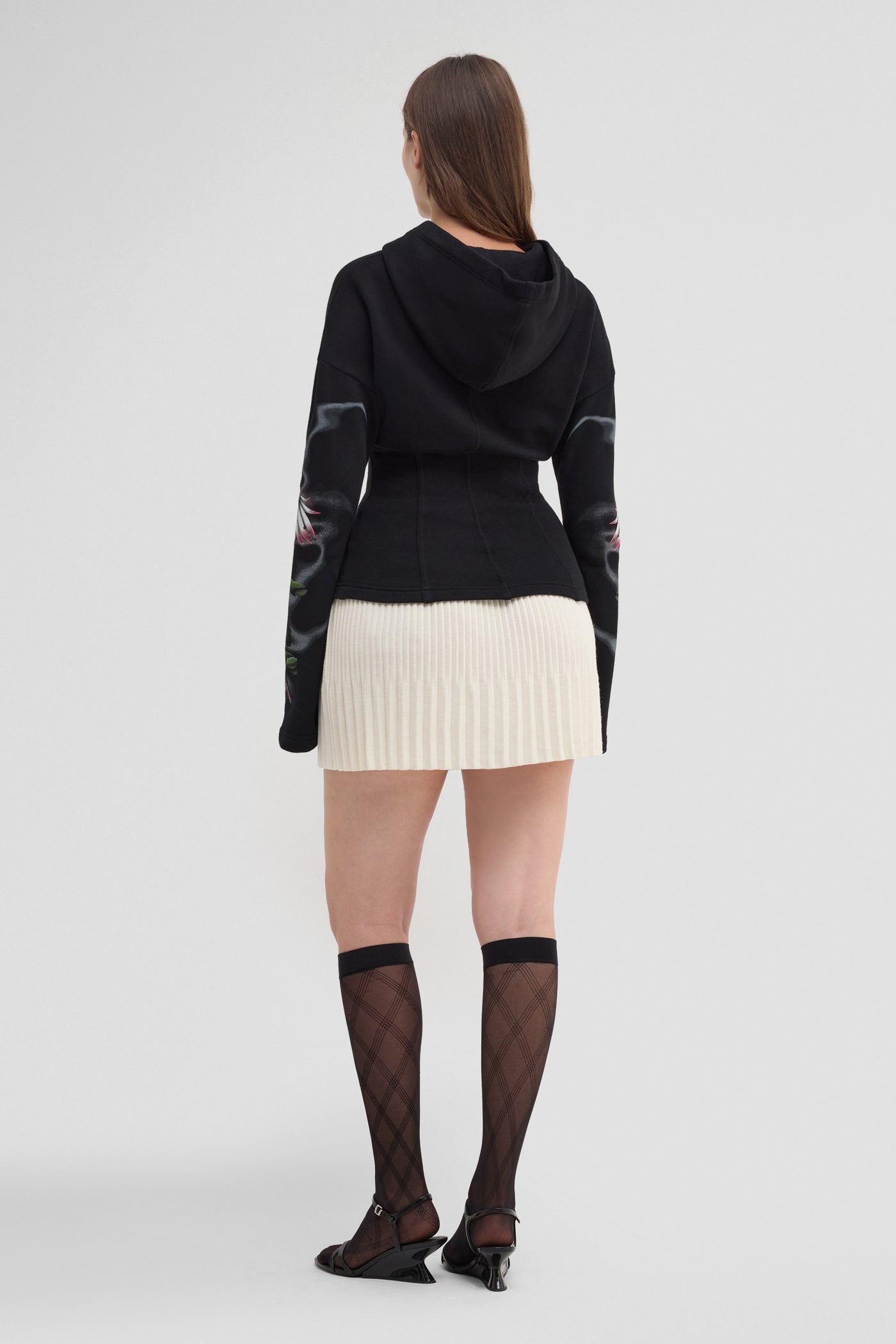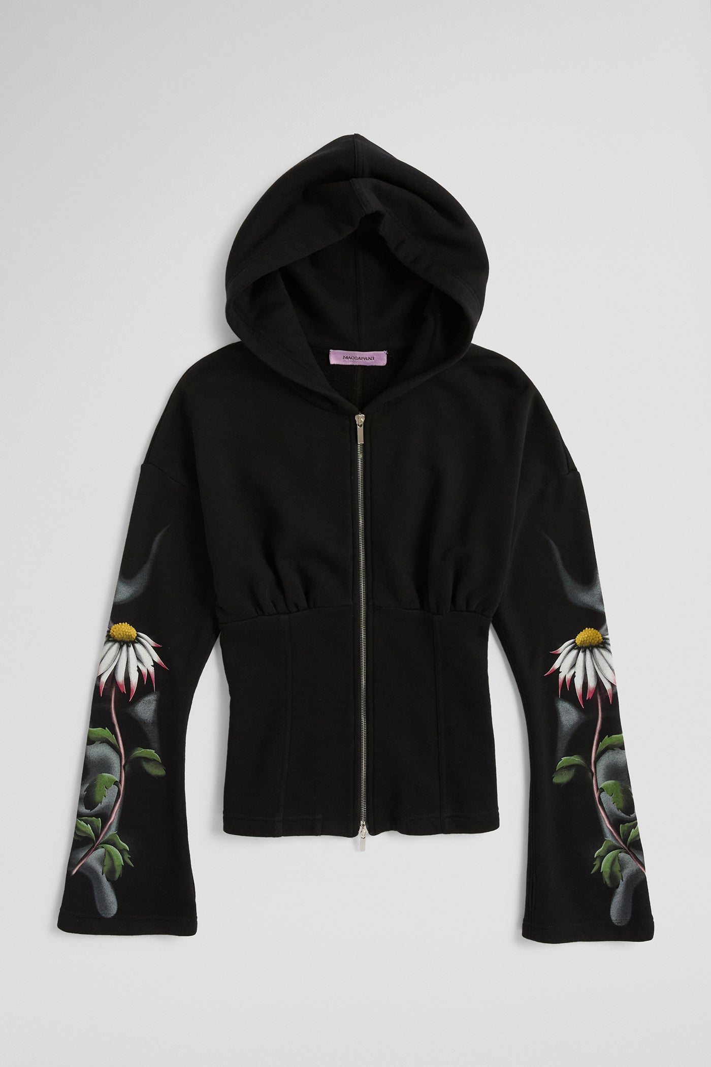 Playing with feminine stereotypes the MACCAPANI way, the HOODESS is our signature hoodie that cinches the waist in the comfiest way. Made from cotton and finished with thumb holes and a holographic Fallen Daisy print along the sleeves.