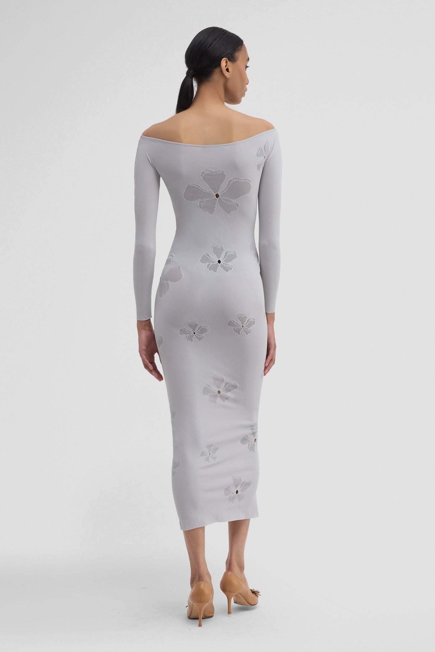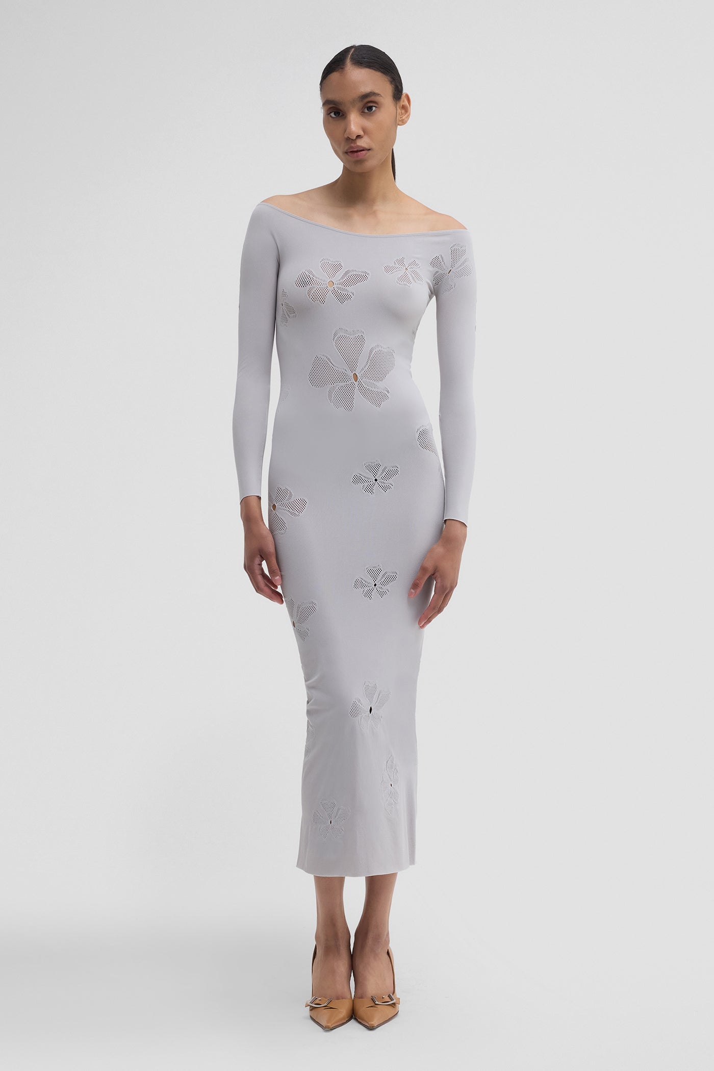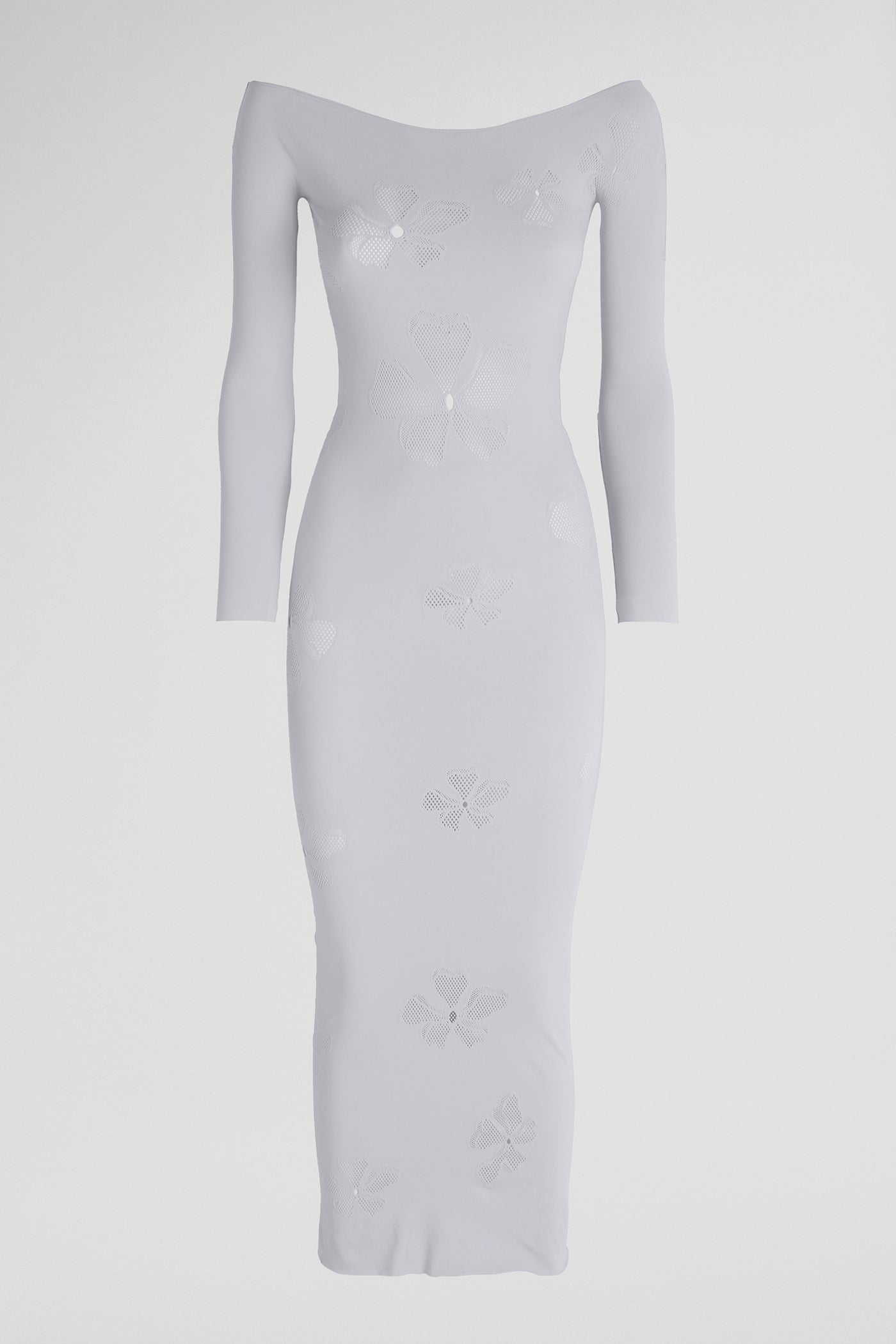 The MONOGRAM DRESS supports and sculpts the body with spiral mesh inlays on an extra-stretchy base. This form-fitting piece plays with bold pattern and texture while maintaining all-day comfort.